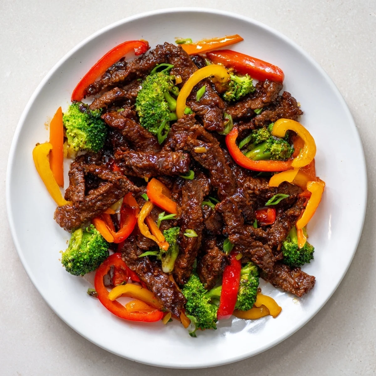 This vibrant dish features thinly sliced beef marinated in soy sauce, rice vinegar, and sesame oil, quickly cooked with fresh vegetables like bell peppers, broccoli, carrots, and spring onions. Stir-fried in a savory mixture of soy, oyster, and hoisin sauces with a touch of honey, it delivers bright flavors and a pleasing texture. Ready in under 30 minutes, it’s perfect over steamed jasmine or basmati rice and makes an easy, flavorful main course.