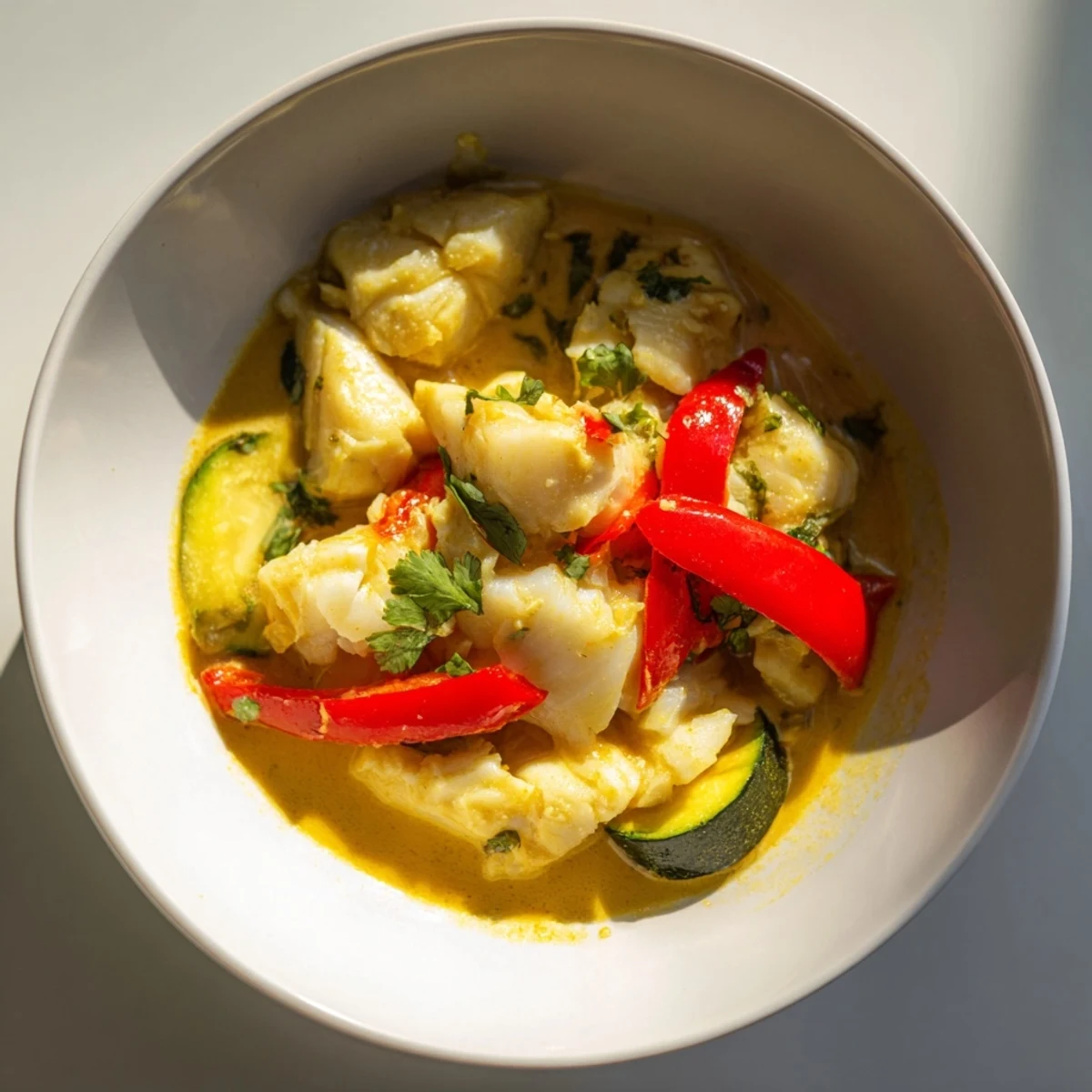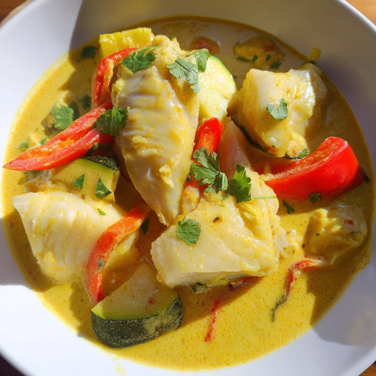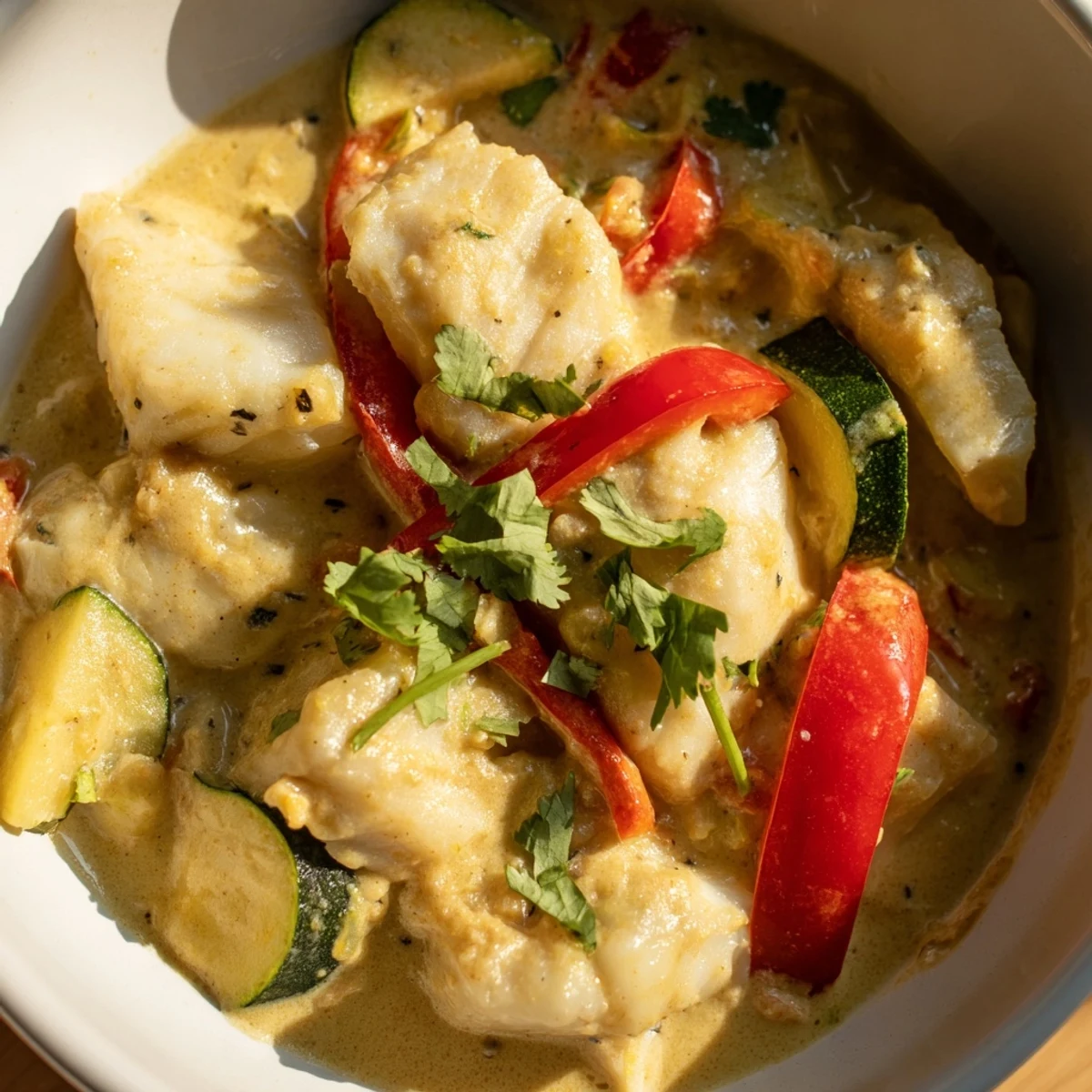 This aromatic stew combines tender chunks of white fish with a velvety coconut milk base infused with ginger, turmeric, and coriander. Fresh vegetables like bell peppers, carrots, and zucchini add color and crunch while red chilies provide gentle warmth. The fish cooks directly in the fragrant broth, absorbing all the beautiful flavors in just minutes. Perfect over steamed jasmine rice, this light yet satisfying dish brings coastal fusion flavors to your table with minimal effort.
