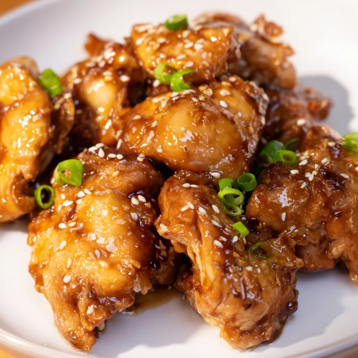Steamed jasmine rice is classic but cauliflower rice works beautifully if you're watching carbs. I've also shredded the chicken and served it in slider buns with extra sauce for parties where people want something hands-on. Cold leftovers make an amazing lunch the next day over salad greens.