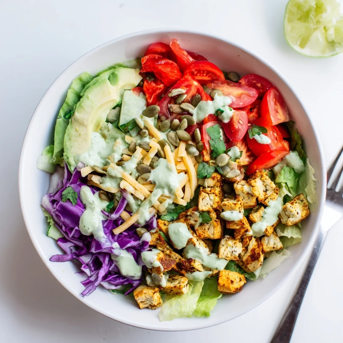 Absolutely. Simply omit the shredded cheese and replace the Greek yogurt in the dressing with full-fat coconut yogurt or additional avocado. The dressing remains creamy and delicious without dairy.