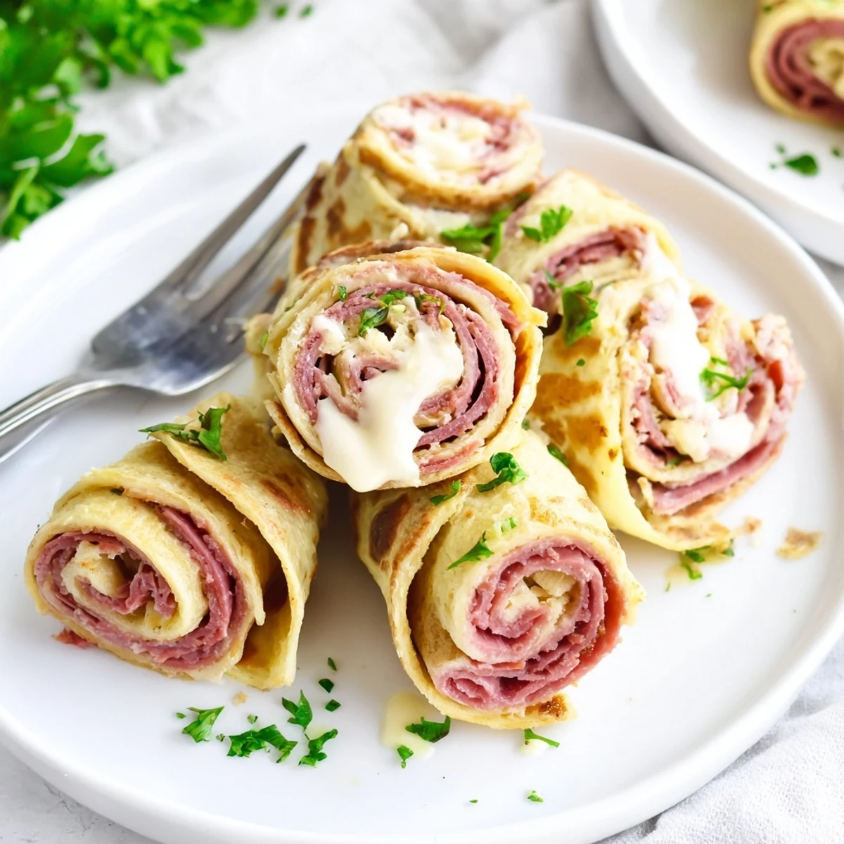 These clever roll ups capture all the beloved flavors of a traditional Reuben sandwich while keeping carbs minimal. Thin, delicate egg creps replace rye bread, creating a light yet substantial wrap that holds generous layers of tender corned beef, well-drained sauerkraut, and nutty Swiss cheese. A creamy sugar-free Russian dressing ties everything together with that signature tangy sweetness. The technique involves quickly cooking thin egg rounds, then rolling them tightly around the classic filling combination. A final brief skillet visit melts the cheese and warms everything through, creating appetizing handheld portions perfect for lunch or a light dinner.