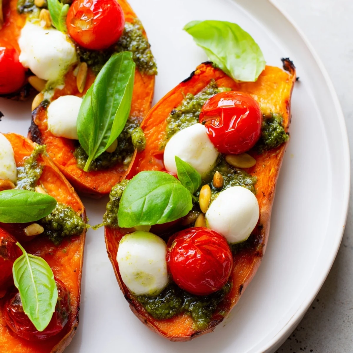 These Mediterranean-inspired sweet potatoes feature tender roasted halves topped with vibrant cherry tomatoes and creamy mozzarella. A fresh homemade basil pesto brings everything together with fragrant herbs and toasted pine nuts. The dish comes together in under an hour, making it perfect for weeknight dinners or casual summer entertaining. Serve warm or at room temperature for a versatile main course that naturally accommodates gluten-free diets.